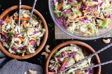 Crunchy cashews and toasted sesame seeds amp up this quick and easy Low Carb Asian slaw, a perfect for a healthy side dish for any low carb meal.