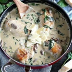 - Add the fresh spinach and let the sauce simmer until it starts to thicken and the spinach wilts. Stir a few times.
